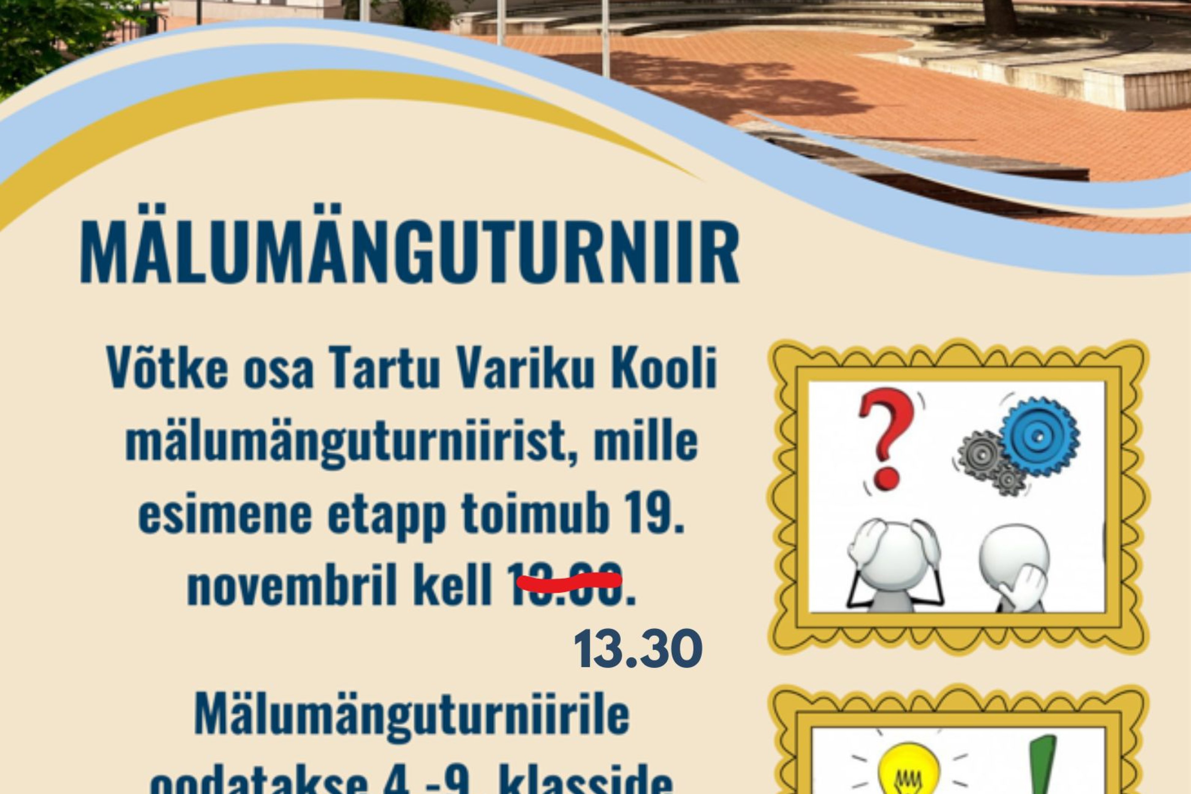 Mälumänguturniiri esimene etapp. Mälumänguturniirile oodatakse 4. - 9. klasside meeskondi (3-4 liiget).
