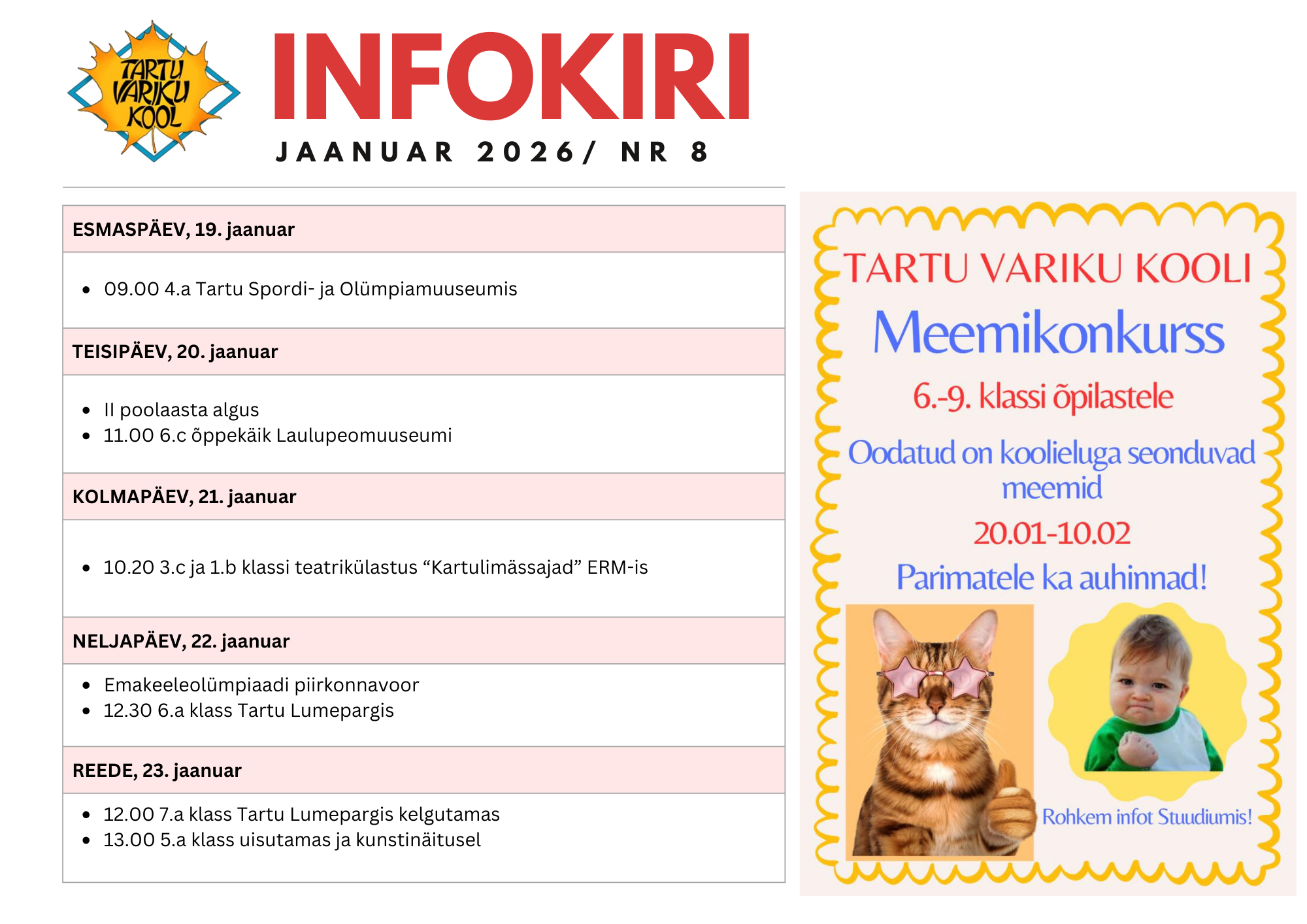 19.-23. jaanuar infokiri | Tartu Variku Kool
