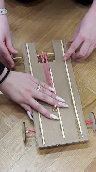 8. klasside meeskonnad valmistasid „Kummimootoriga automobiili“. Meisterdamisel tulid abiks teadmised füüsikast (mass, hõõrdumine, kiirus jt mõisted) ning oskus taibukalt materjali kasutada. Nii valmisid „võistlusautod“, mis praktilise töö lõpus pandi stardijoonele ning selgitati välja kõige töökindlam lahendus.