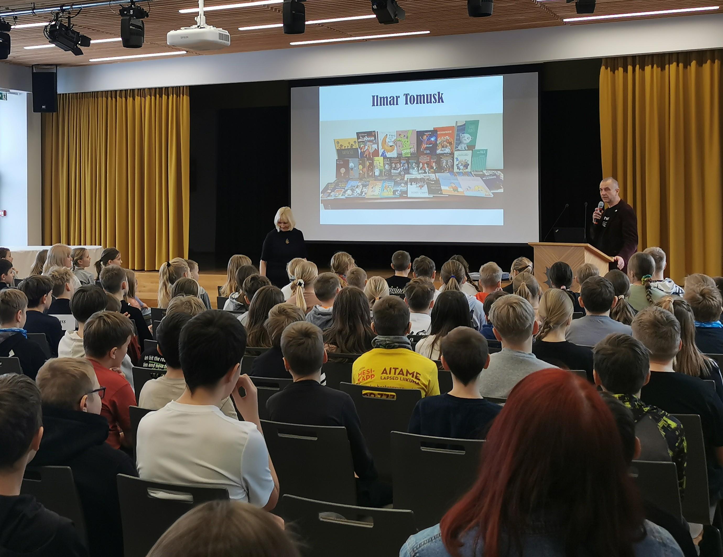Esmaspäeval, 3. veebruaril tuli meie 4.–6. klassi õpilastele külla Ilmar Tomusk, kes rääkis, kuidas temast kirjanik sai, ning tutvustas oma raamatuid. Selgus, et Ilmar Tomuskilt on ilmunud aukartust äratav hulk raamatuid, millest nii mitmedki on auhindu teeninud. Õpilased said teada, kuidas sündisid lustakad Volli lood, miks hakkas kirjanik kirjutama krimilugusid ja palju muud huvitavat. Kohtumise lõpus jagas kirjanik soovijatele autogramme.