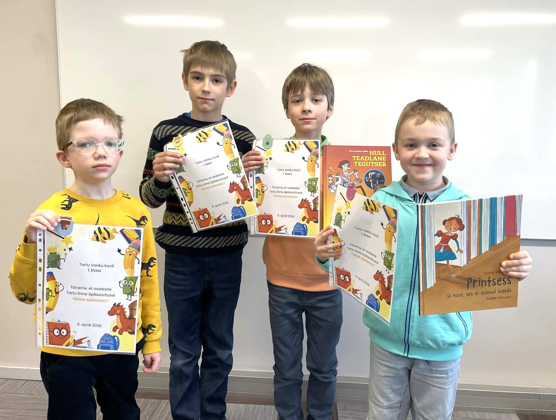 9. aprillil toimus Tartu Descartes'i Koolis 1.-2. klasside lugemis- ja loogikamängude õpilasvõistlus „Õpime mängides“. Meie kooli esindasid Ats Urb, Karl Vilhelm Võsa, Markus Thor Mäe ja Ralf Tani.