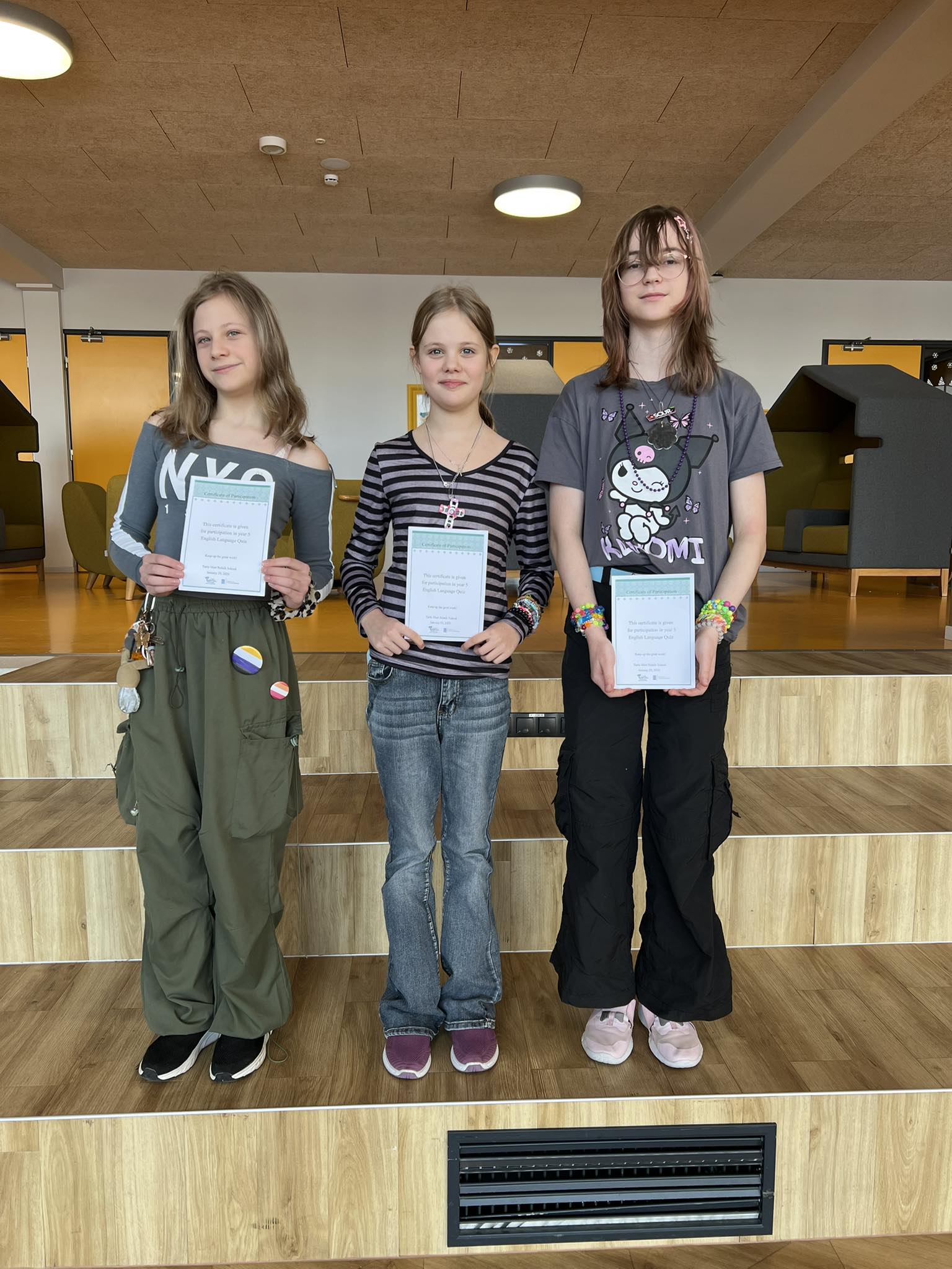 Neljapäeval, 29. jaanuaril toimus Tartu linna 5. klasside inglise keele õpilasvõistlus, mille korraldas ja viis läbi Tartu Mart Reiniku Kool. Meie kooli esindasid suurepäraselt Aliise Jaal, Heleene Mainla ja Ketlin Kuningas 5.a klassist, kes saavutasid tubli VII koha. Kokku osales võistlusel 17 Tartu kooli.