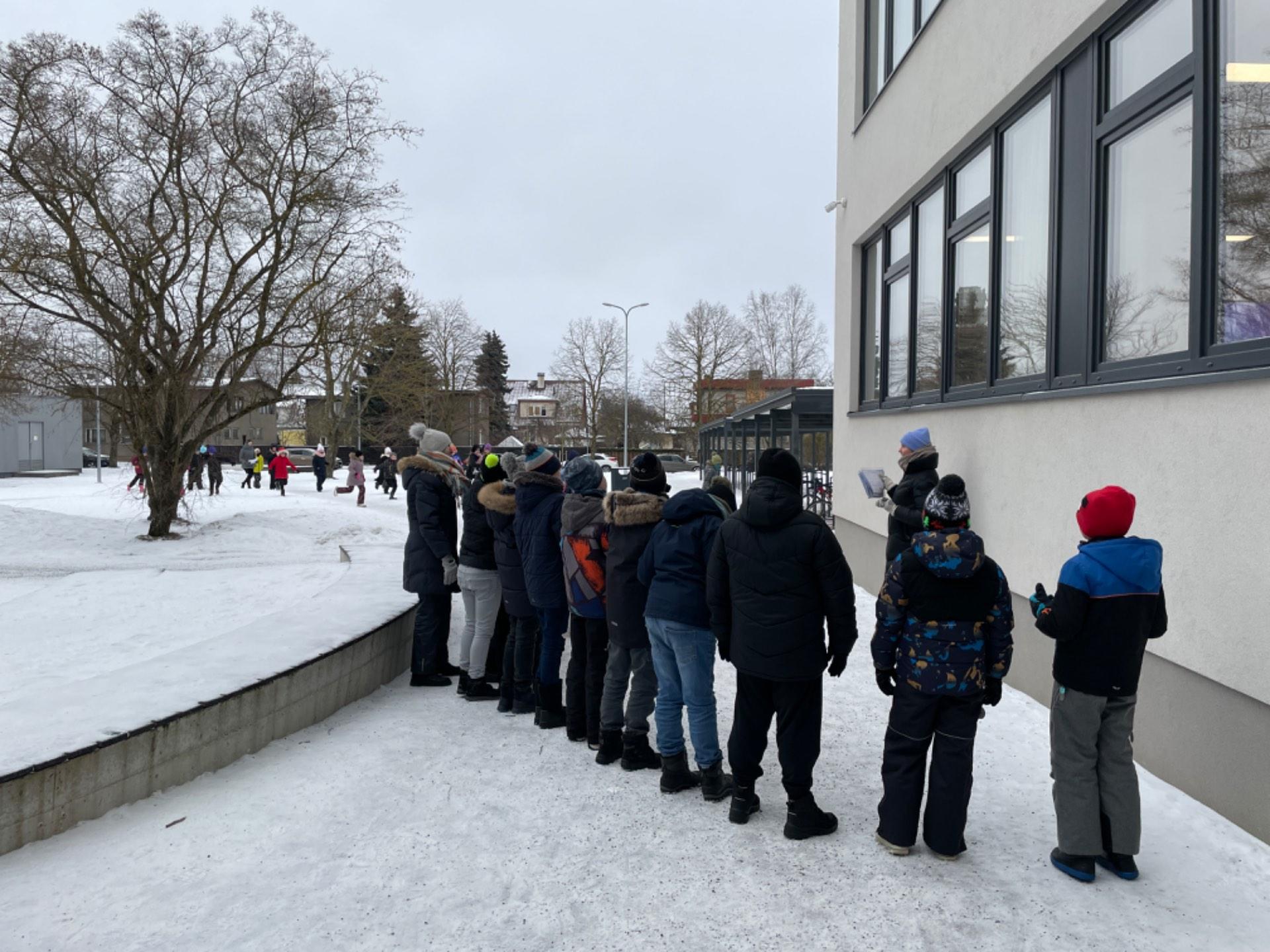 Eilse vastlapäeva puhul käisid kõik klassid õues vastlapäeva-teemalist avastusrada läbimas. Külma trotsides tegid 3. klassid enne raja läbimist näiteks soojendusharjutusi! Lõunal sõime hernesuppi ja vastlakuklit.